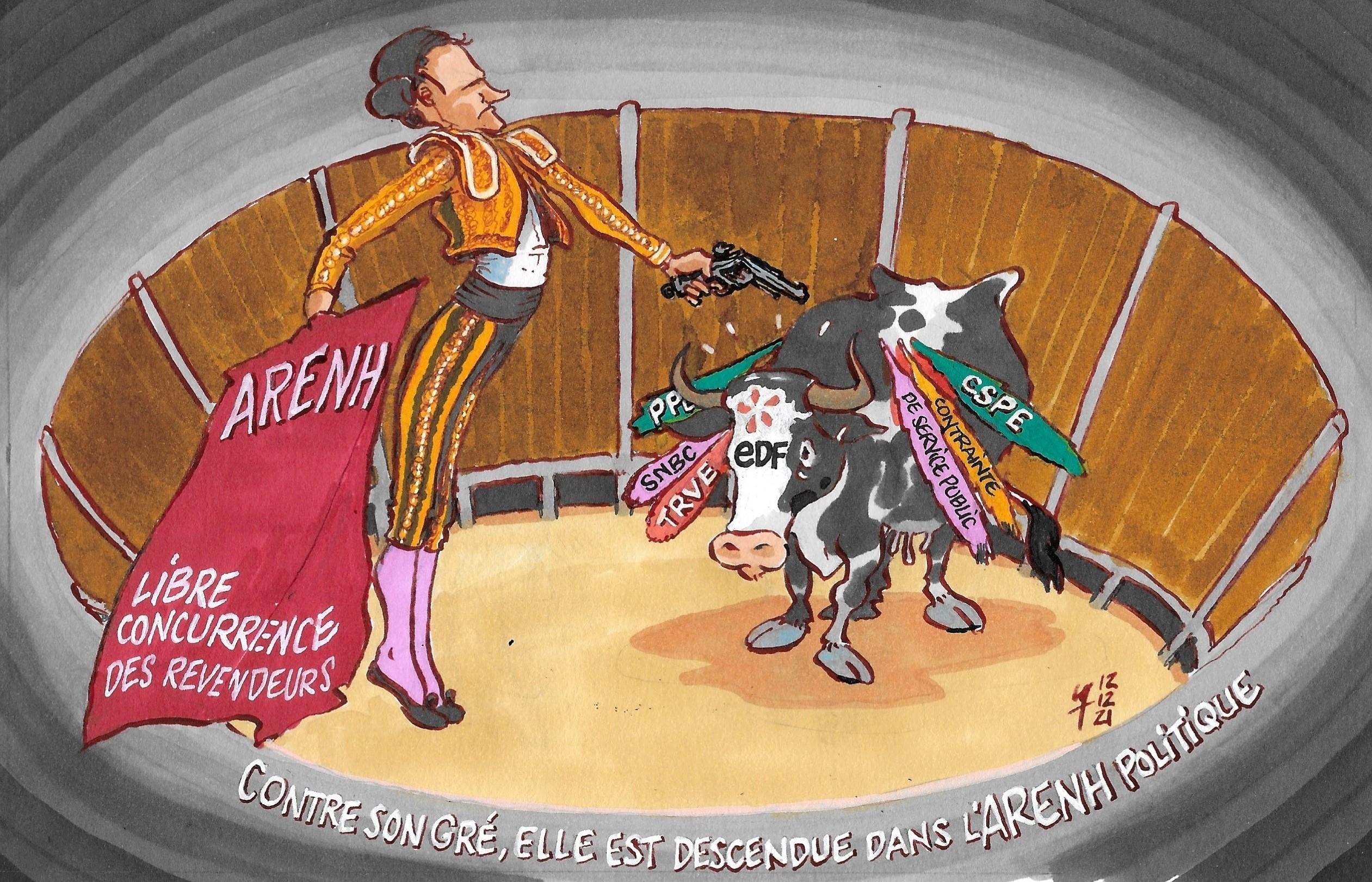 L’ARENH (Accès Réglementé à l’Électricité Nucléaire Historique) oblige EDF à fournir à ses « concurrents » (sic) une part de sa production nucléaire, 100 TWh sur 420, à prix doux fixé par l’Etat. EDF est privée notablement d’un avantage concurrentiel crucial, le faible coût de sa production nucléaire…et les « concurrents » succombent à la tentation de ne pas produire.