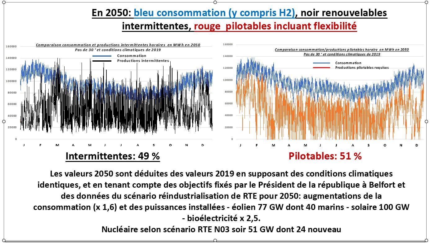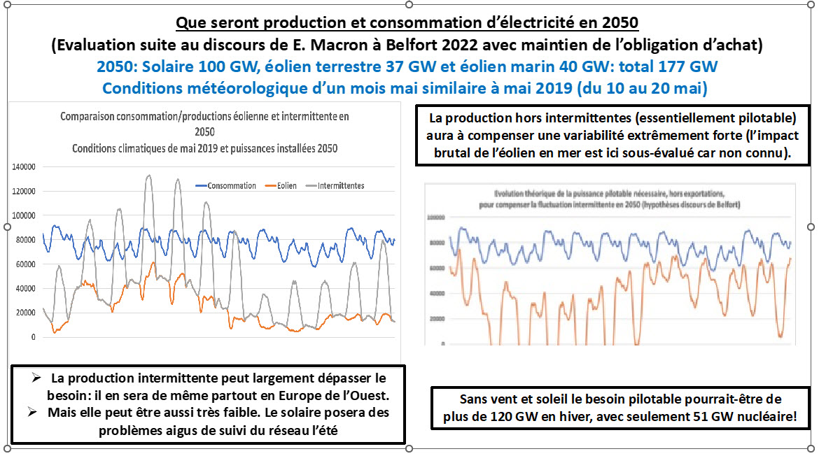 • En 2050 avec les hypothèses du scénario N03 de RTE, le plus compétitif, et également en conformité avec le discours de Belfort.