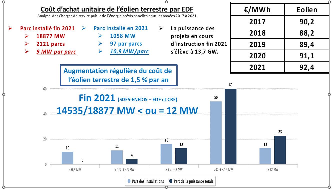 Est-ce un effet pervers de l’Arrêté Ségolène Royal de 2017 : il a autorisé les investisseurs à choisir un prix d’achat prix fixe pendant 20 ans pour les parcs éoliens de moins de 7 mâts et 18 MW ? Avec bien sûr l’application d’un rattrapage annuel préservant leurs marges. Et on peut constater que depuis 2017 les parcs font presque tous moins de 18 MW et 6 mats : pour échapper aux appels d’offre on saucissonne les projets sans que la CRE n’intervienne, malgré de nombreuses alertes.
