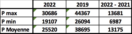 L’examen détaillé de ces mesures montre que la puissance moyenne délivrée sur la période est inférieure en 2022 de 13 000 MW, et non de 31 000 MW, ce qui est cohérent avec l’arrêt sur des problèmes de corrosion (CSC) de 11 réacteurs représentant 14 000 MW de puissance.