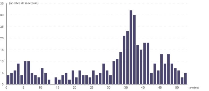 Seuls les USA (14), l’Allemagne (5) et le Japon (1), ont achevés des démantèlements en raison de l’âge de leur parcs ou de décisions d’arrêt, comme en Allemagne. Sur les 59 réacteurs arrêtés de type REP, 7 sont démantelés aux USA et 9 chantiers sur 14 sont bien avancés en Allemagne. En France un seul REP est largement démantelé, à Chooz(300MWe), et deux sont seulement en phase de mise à l’arrêt définitif, à Fessenheim[3]. Il est difficile de prévoir le nombre de réacteurs REP (très majoritaires, 365 unités opérationnelles) qui seront arrêtés dans les prochaines années car, comme constaté aux USA, leur capacité à fonctionner bien au-delà des 40 ans est acquise[4], beaucoup d’entre eux ayant obtenu une licence pour 60 ans, voire 80 ans. La pression sur le climat, suite à la COP 26 devrait aller dans le sens de prolongation des exploitations, y compris en France. C’est cependant une question industrielle majeure puisqu’une limite d’exploitation à 50 ou 60 ans généralisée conduirait à environ 100 ou 275 arrêts supplémentaires dans les 20 ans.