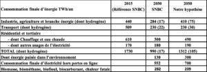 Pour répondre aux besoins en énergie en 2050 sans consommer d’énergies fossiles et produire de l’hydrogène tout en évitant des dépenses inconsidérées d’économie d’énergie, les prévisions de consommation d’électricité de la Stratégie nationale bas carbone (SNBC) et l’hypothèse de référence de RTE (Réseau de transport d’électricité), soit 650 TWh par an, sont très insuffisantes. Le Président de la République a, dans son discours de Belfort, retenu comme hypothèse une consommation supérieure de 60 % à la consommation actuelle, soit 750 TWh, pour prendre en compte une réindustrialisation plus vigoureuse, mais sans modifier un objectif d’efficacité énergétique, qui est surévalué.