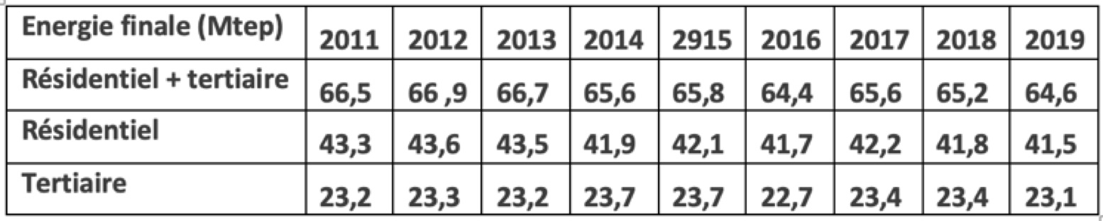 La consommation d’énergie finale, « n’a baissé que de 4 % de 2012 à 2021, soit 0,4 % par an » dont les 2/3 sont malheureusement liés à la décroissance industrielle. Par ailleurs les progrès dans les domaines les plus émetteurs tels que le bâtiment et les transports sont quasi inexistants :