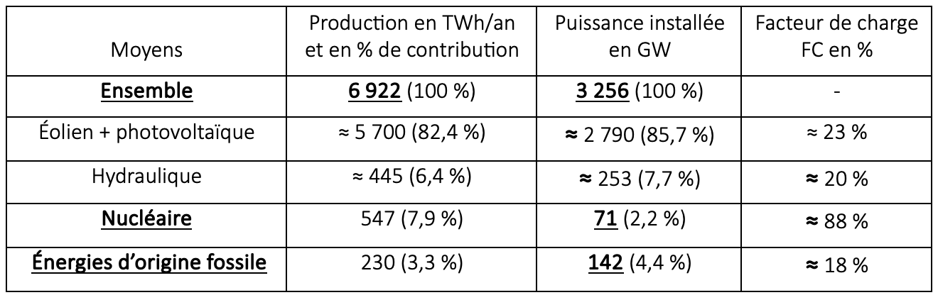 – Les facteurs de charge indiqués dans le tableau 1 ne sont pas explicités dans le document de la Commission. Ils sont obtenus à partir des productions et des puissances installées. Ils sont donc entachés d’imprécisions et doivent être considérés comme des ordres de grandeur.